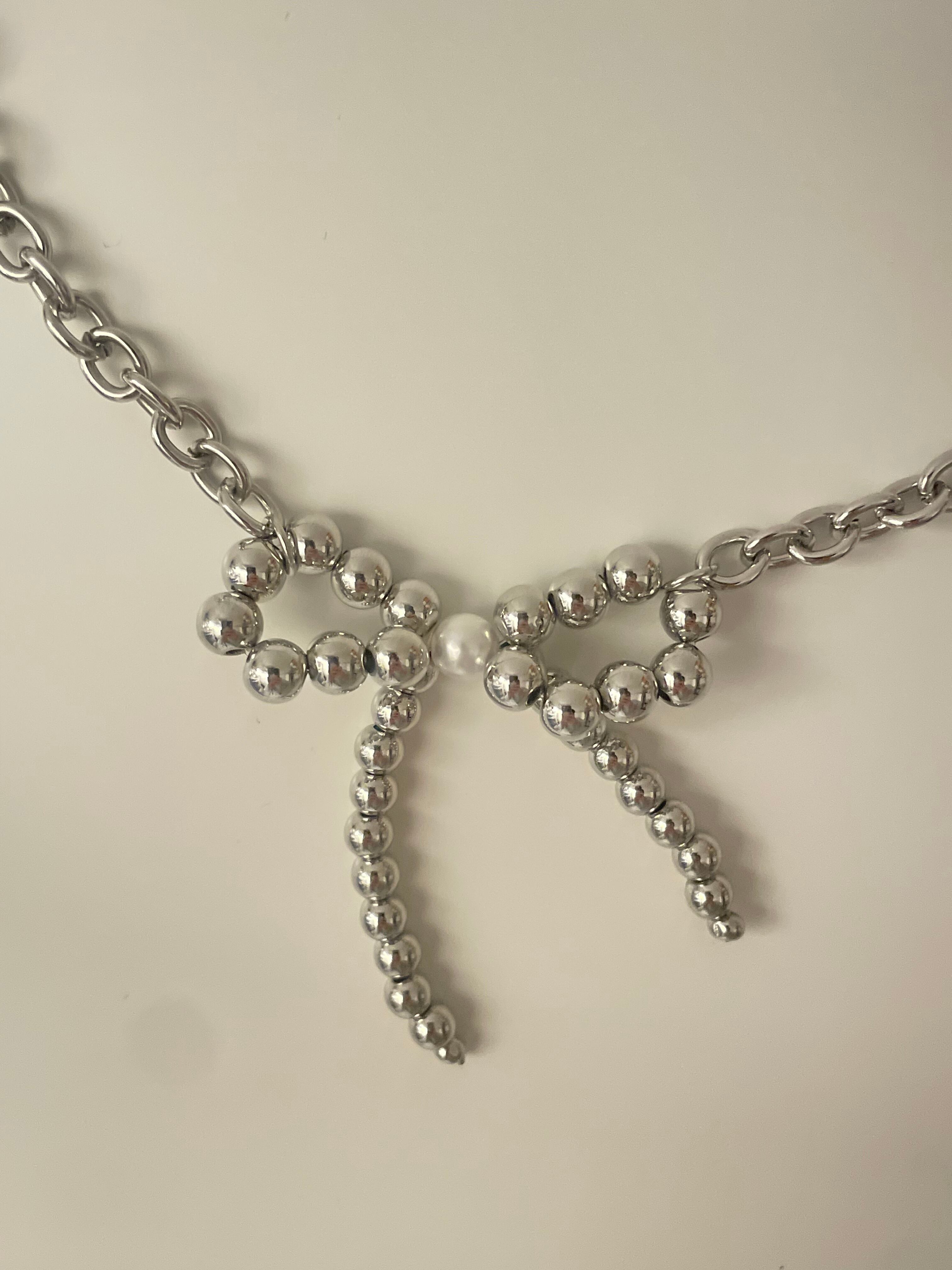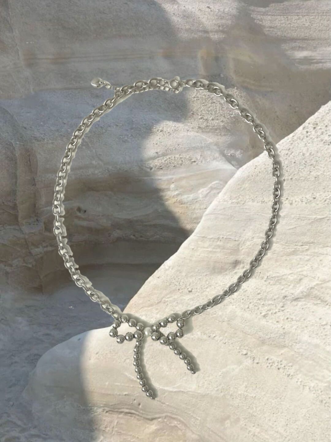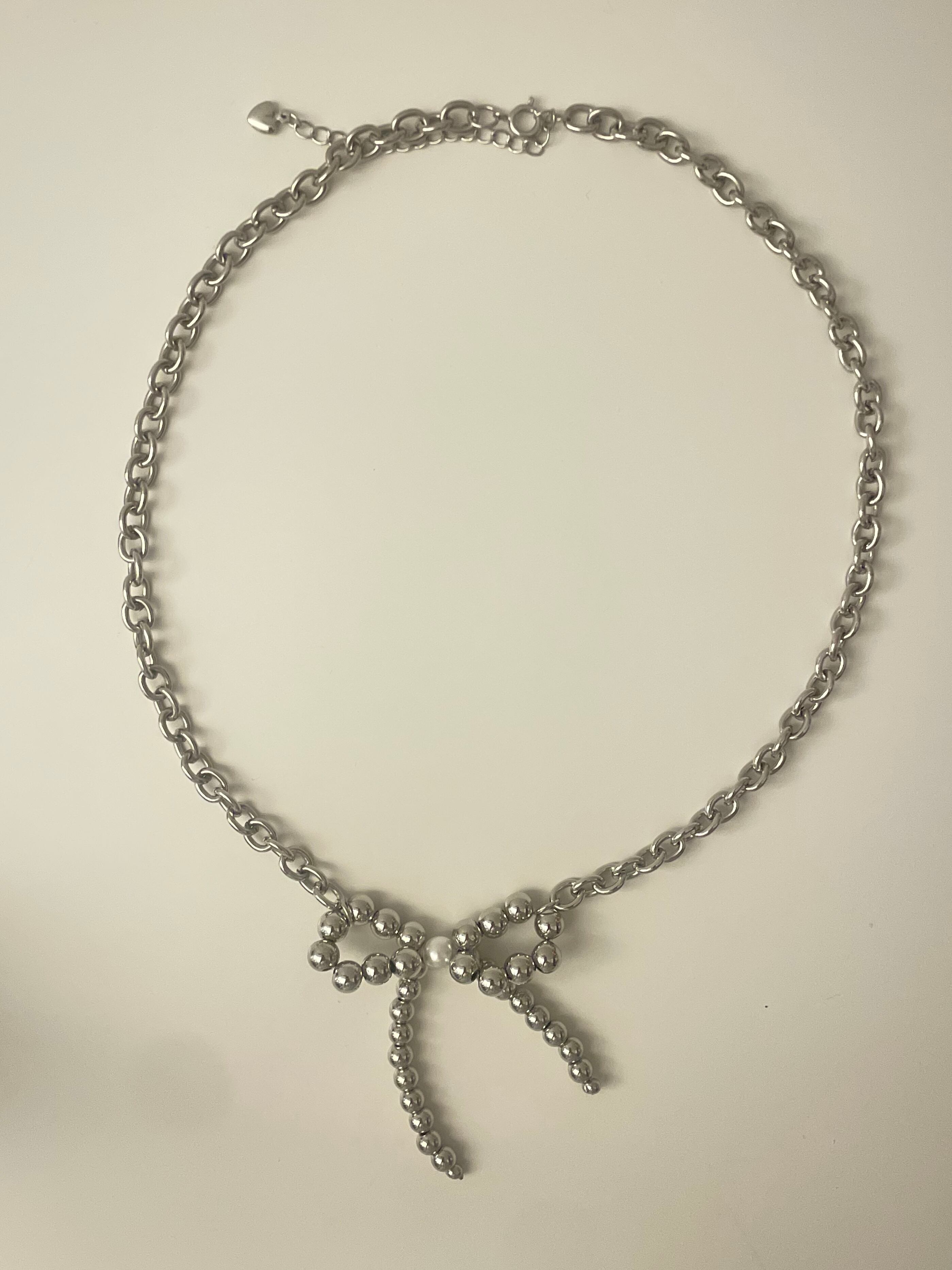 トップのシルバーリボンが印象的なチェーンネックレスです