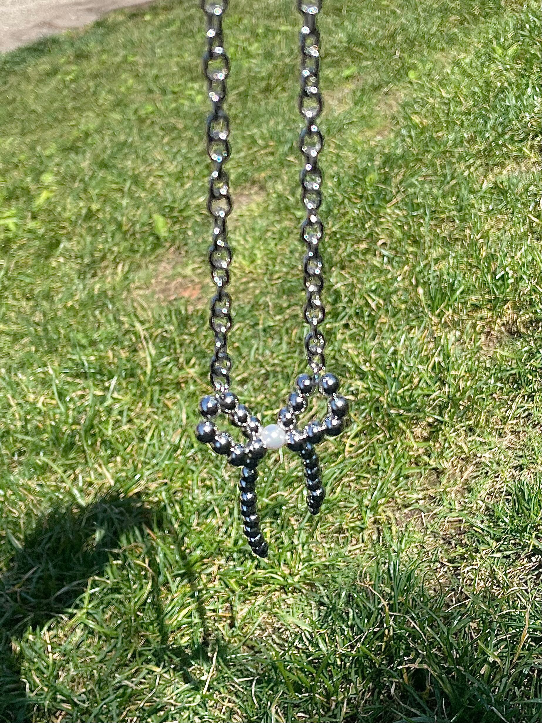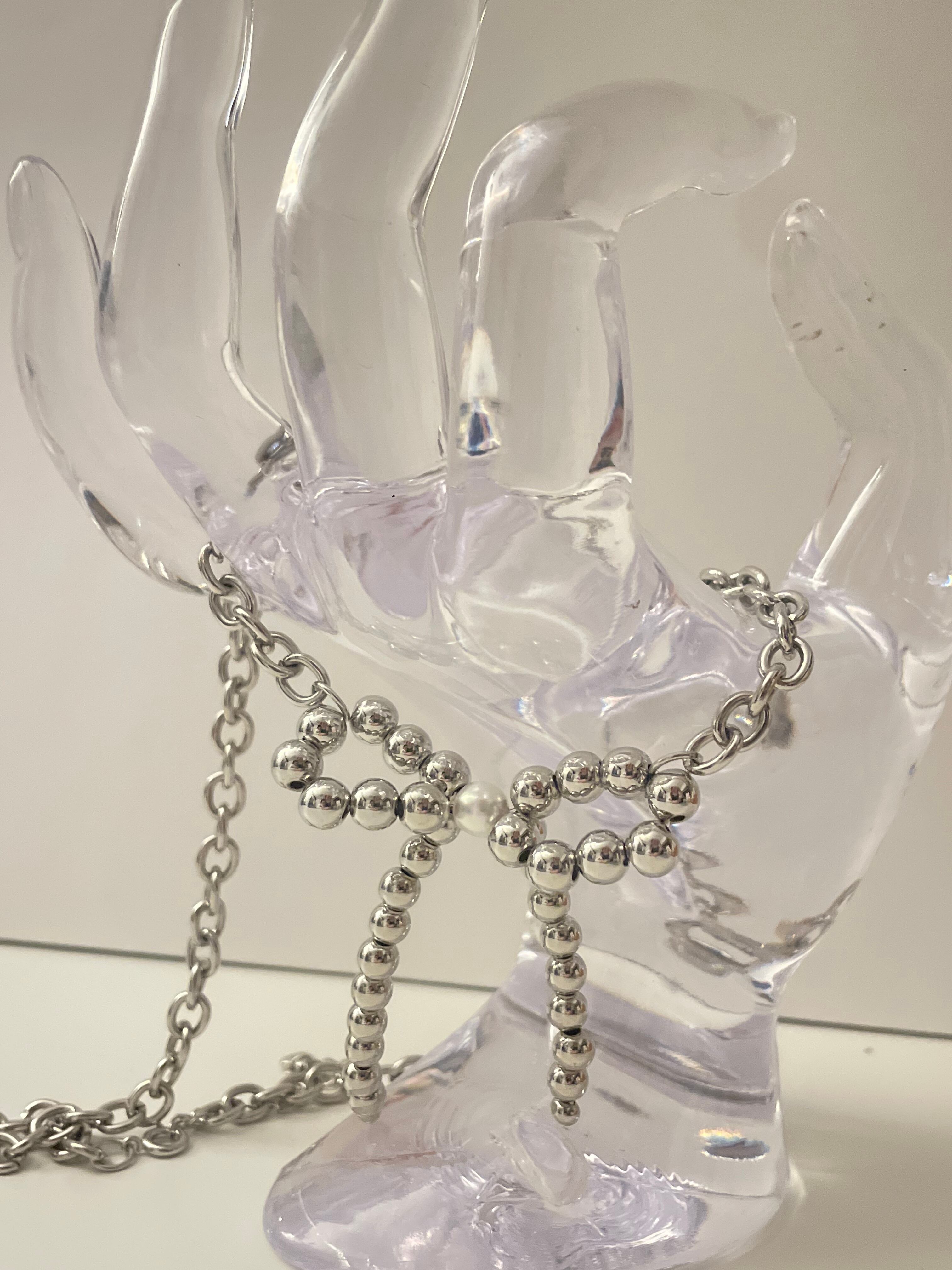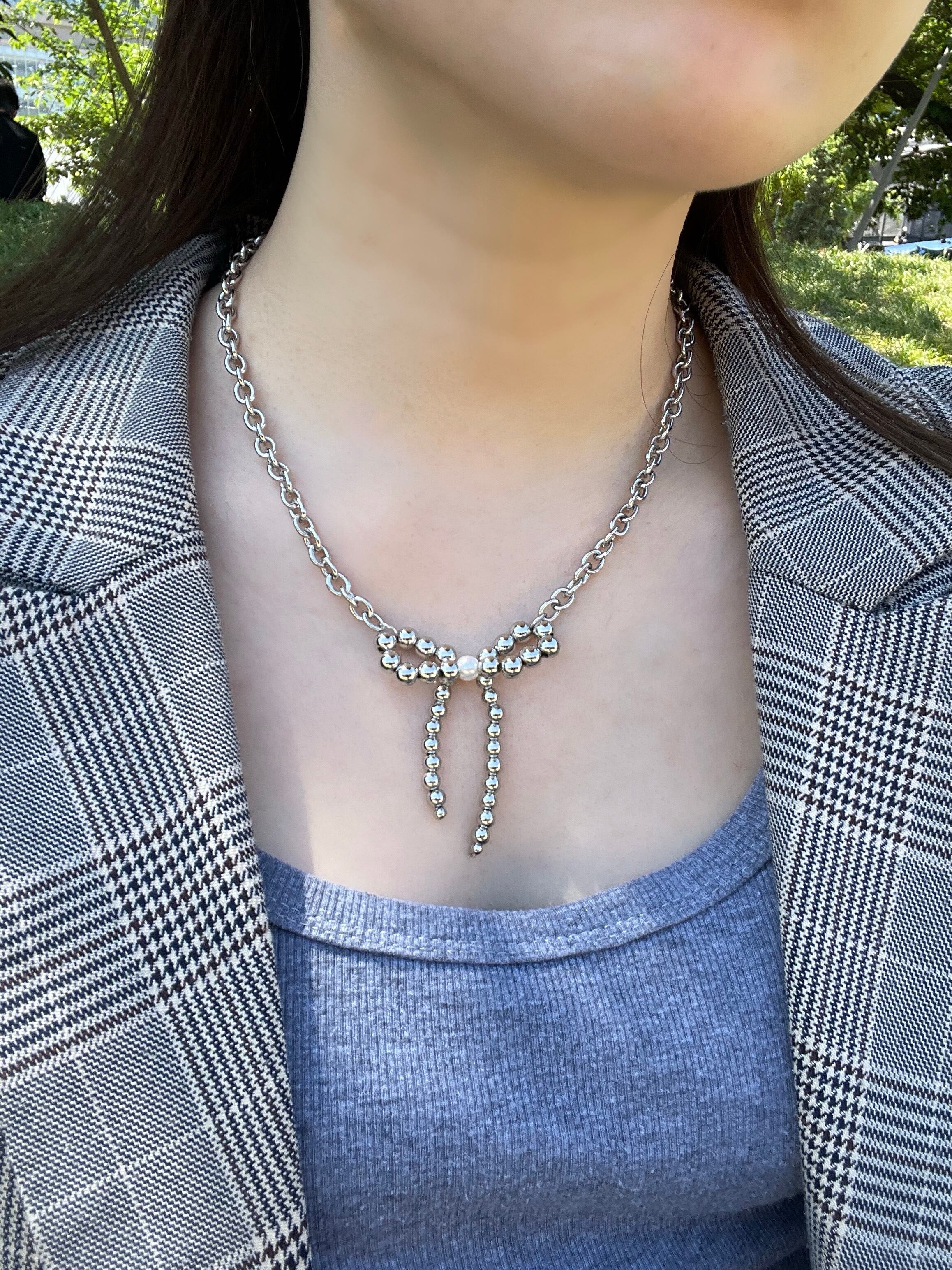 トップのシルバーリボンが印象的なチェーンネックレスです